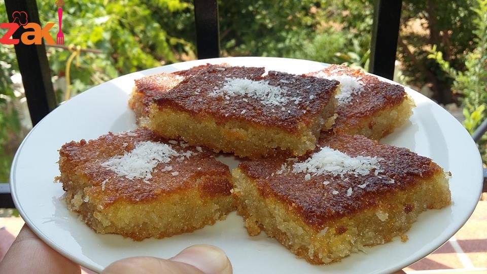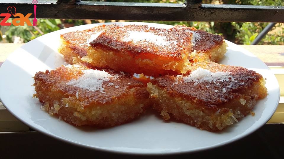 نطفئ الفرن من تحت ونقطعها حسب الذوق ونضع القليل من القطر عليها