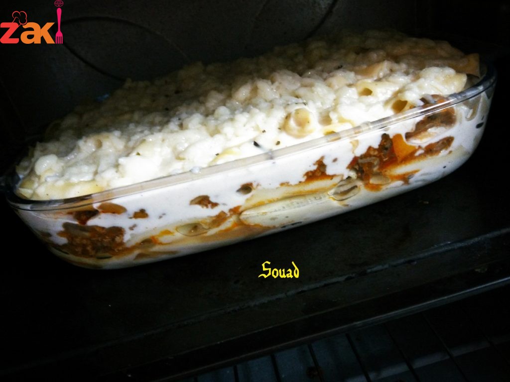 معكرونة بالبشاميل واللحم المفروم