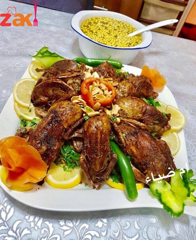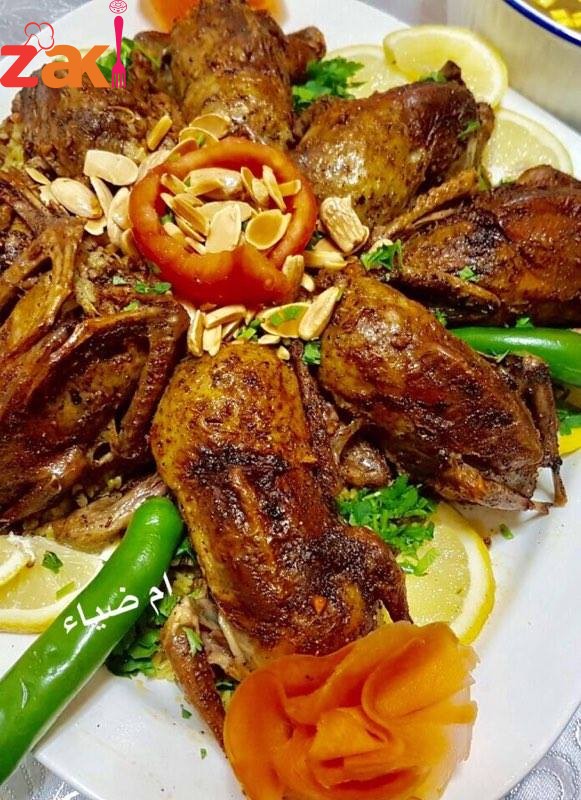ونضعهم في صنيه بعد ان ندهن الزغاليل من الخارج باليمون والببريكا والبهار والفلفل الاسود وزيت الزيتون ونغطيها بورق قصدير نضعهم بالفرن تحديد ساعه