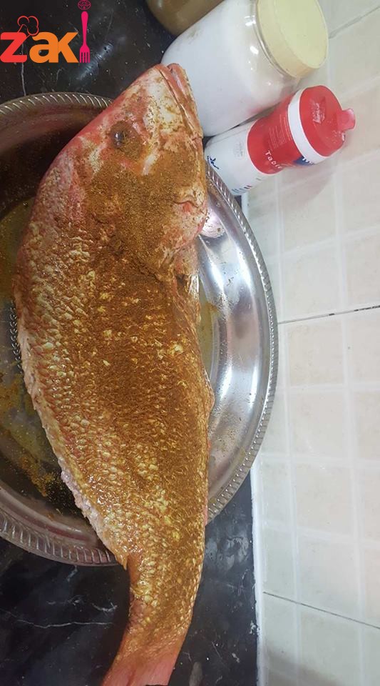 اي نوع سمك بتحبيه انا جبت سمك الحمرا بتبل السمك في بهار والليمون والملح من جوا وبره وبخليها على جنب لحتي اسوي الحشوه وهي عباره عن بصل مفروم وطماطم وفلفل اخضر والفلفل على زوقك بس طيب يكون حار وبحط معهم بقدونس وكزبره خضره وشويه ثوم وزيت زيتون وبحشي قلب السمكه