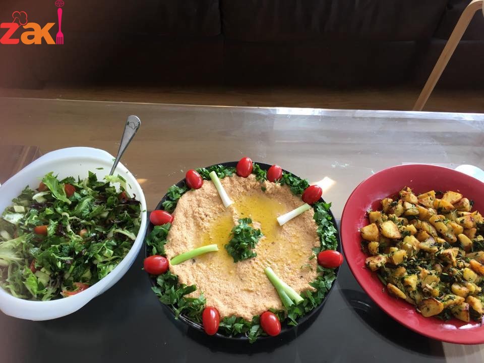 الزهرة (أو القرنبيط) سلقتهم نص سلقة وصفيتهم وحطيتهم على صنية فرن وحطيت فوقهم معلقةزيت ورشة ملح وشويتهم وبعدين حطيتهن في الخلاط وحطيت معهم ملح وعصير ليمون ولبن وطحينة وحصين توم وزيت زيتون وطحنتهم.
