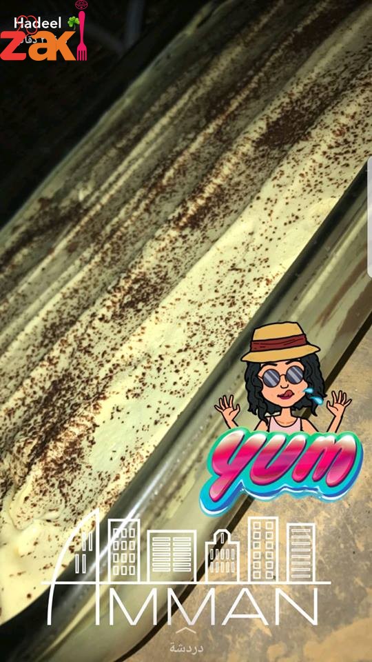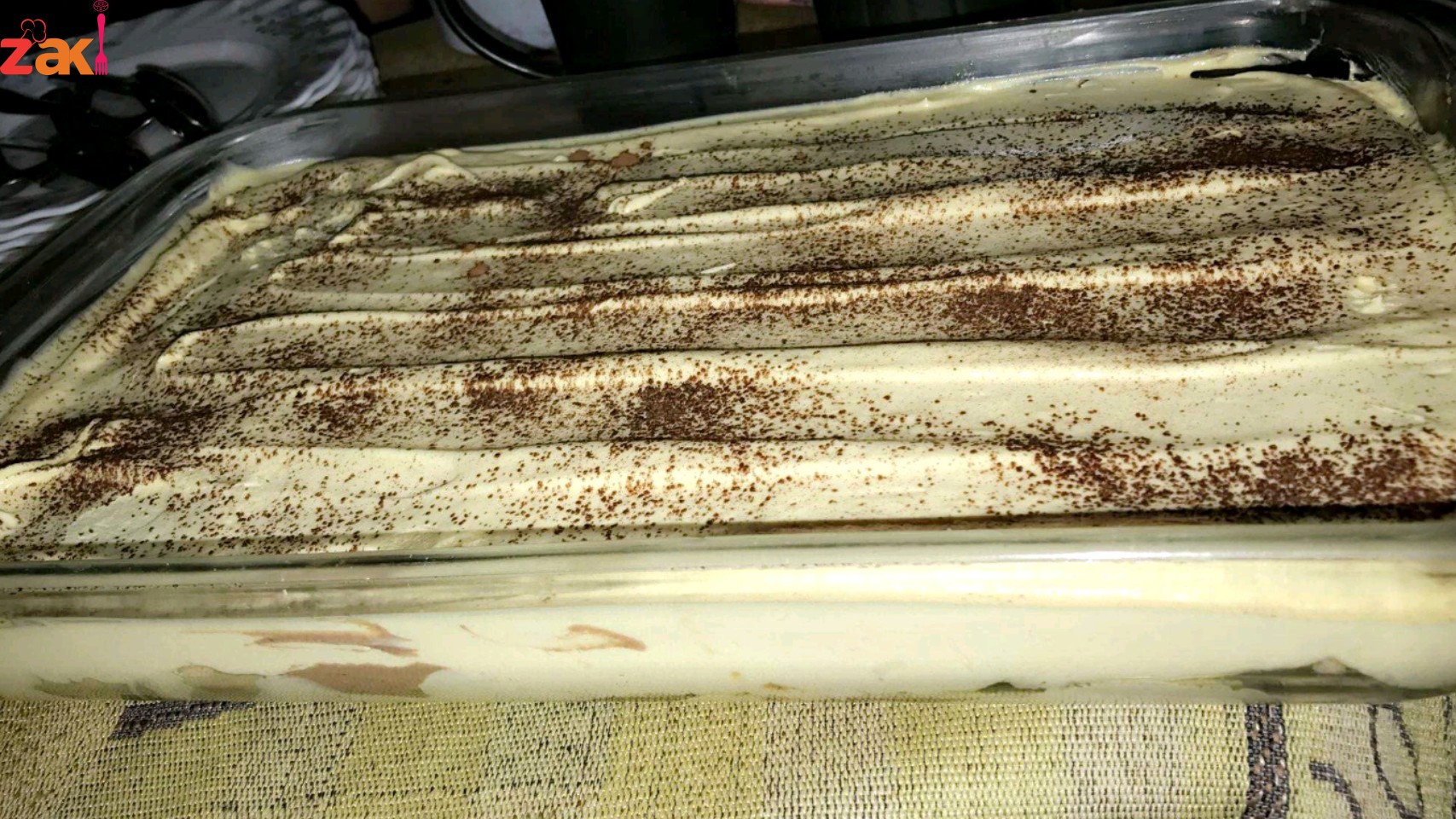 في صينيه بتحطي بسكوت طبقه وحده وبتعملي خلطه مكونه من ٢ظرف كريم كراميل و٤ظرف كريمه جاهزه و٢ كوب حليب ونخلط جيدا بالخفاقه ونضع طبقه على البسكوت بعدين كمان طبقه بسكوت وباقي الخلطه حطي معها ١ ملعقه كاكاو ونخلط جيدا نضعه على البسكوت وزيني بالبسكوت مكسر ورشه كاكاو وحطي بالفريزر لمده ساعه وقدمي وصحه
