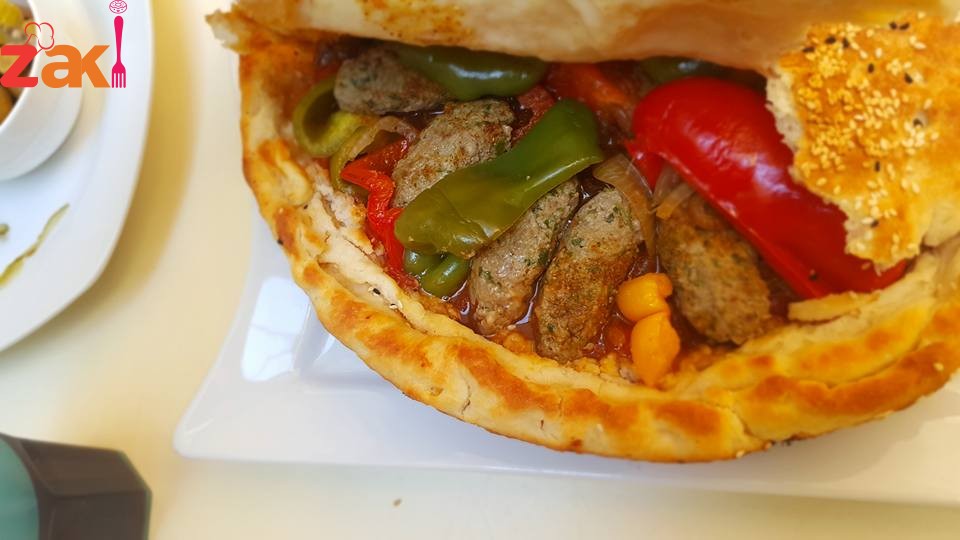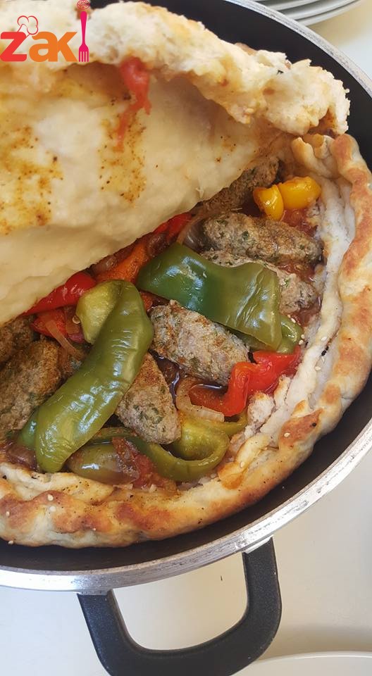 هلا بنمد العجينة وبنحط البندورة وفوقها البصل والفليفلة وبنصف الكفتة