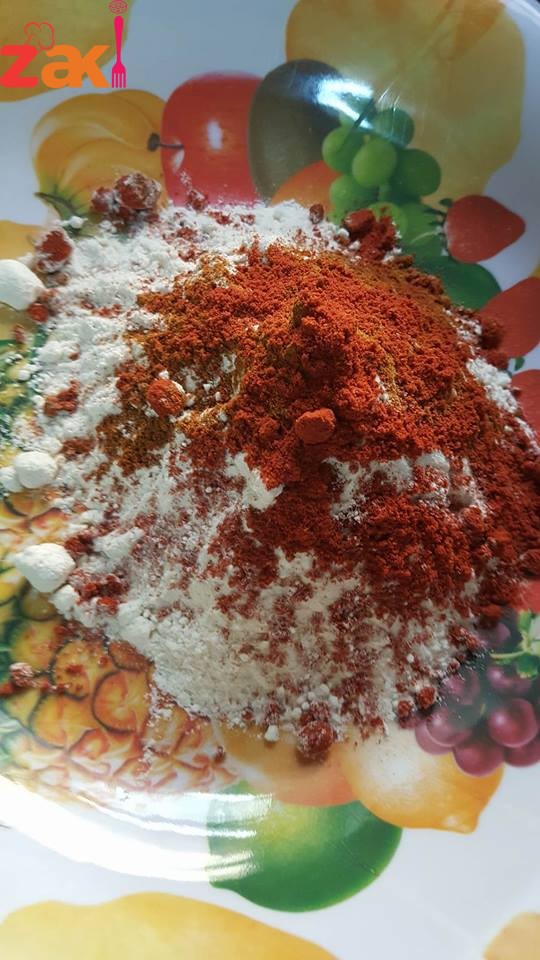 وبنحط على جنب كاسة طحين ملعقة صغيرة ببريكا وملعقة صغيرة ببريكا حرة اذا بدنا ياهم سبايسي