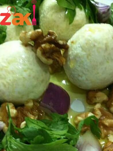 ضعي كم حبة بالطبق وزينيه بالبقدونس والجوز والبصل وزيت الزيتون .