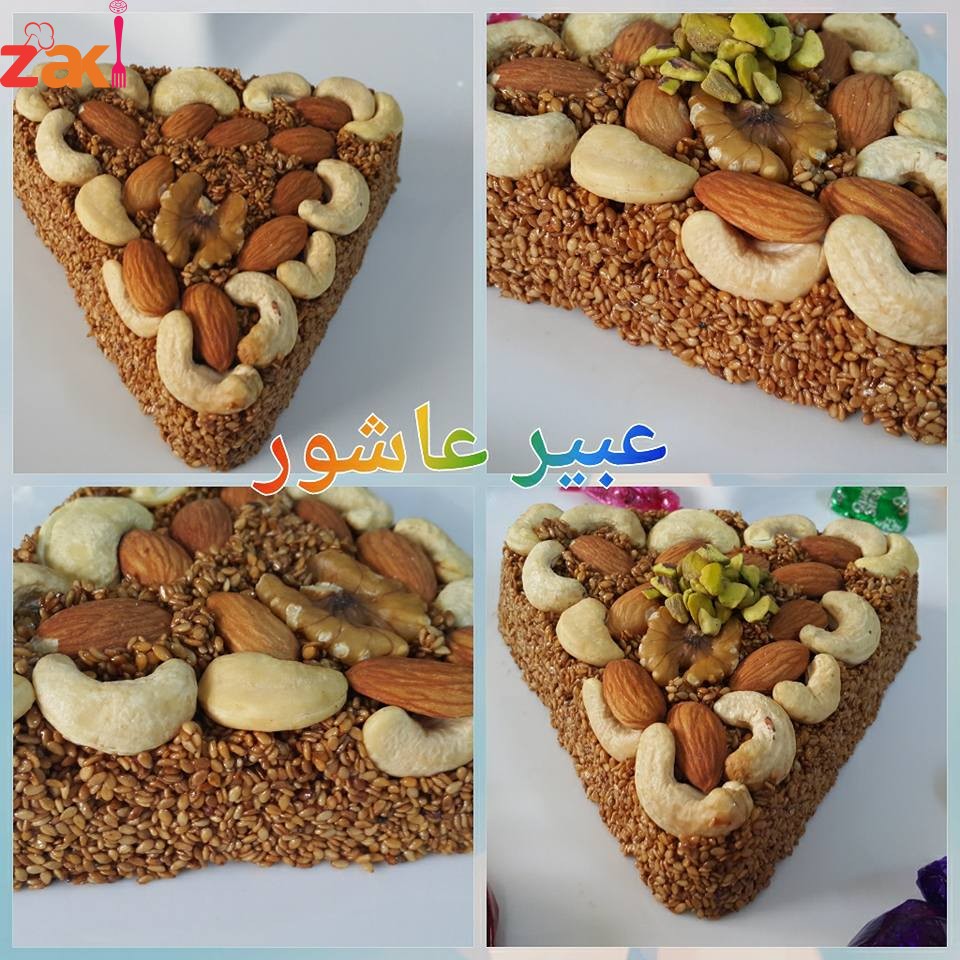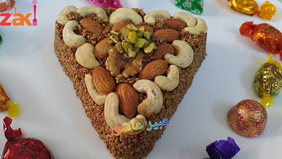 في صينينة ممسوحة بالزبدة نسكب السمسمية ونزينها بالمكسرات, ونتركها لتبرد