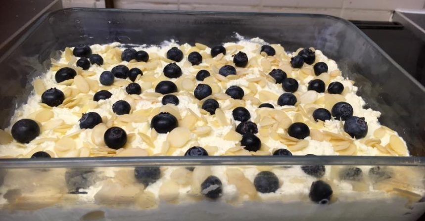 ولما برد السميد حطيتها عالوجه وزينت بالمكسرات وممكن اي نوع فاكهة.