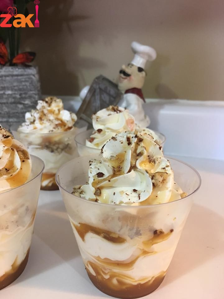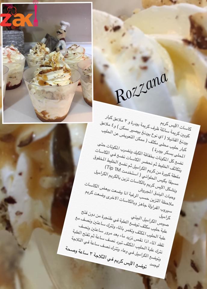 نحضر الكاسات نضع في الكاسات ملعقة كبيرة من كريم الكراميل