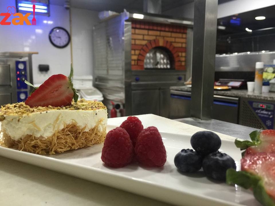 ضعي في القالب عجينه الكنافه اولا ثم ضعي الجبنه فوقها وضعيها بالثلاجه حتي تتماسك لمده ربع ساعه
