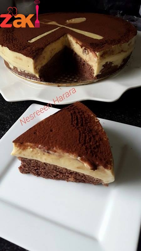اول طبقة كيك شوكولا جاهز اة كيك تعمليه بالبيت وممكن بدل الكيك تحطي بسكوت مطحون ومفروك بزيدة وقشطة والطبقة التانية عالنار نضع اربع كاسات حليب سائل ومعلقة كبيرة نس كافيه (اختياري)