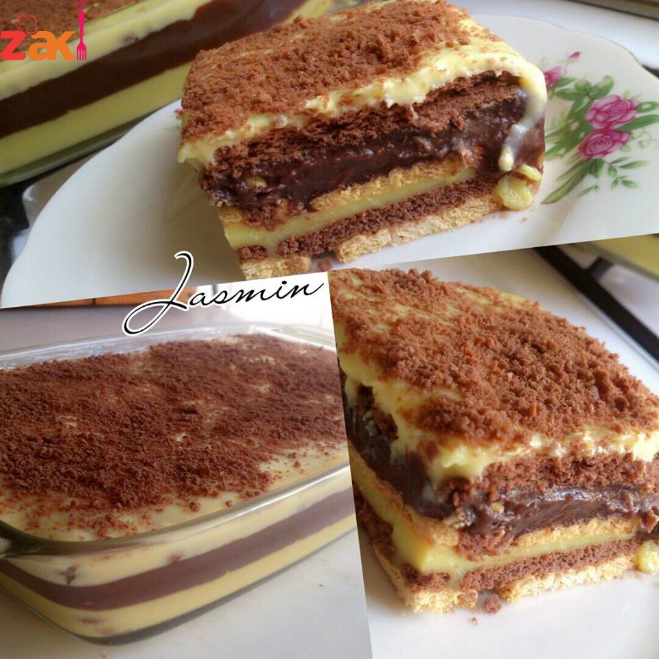 تالت طبقة بودينغ شوكولا وممكن كراميل بس ع شوكولا او كاسترد بالشوكولا واذا عندكن اياه ابيض ما بدها تشتروا بس حطوله كاكاو