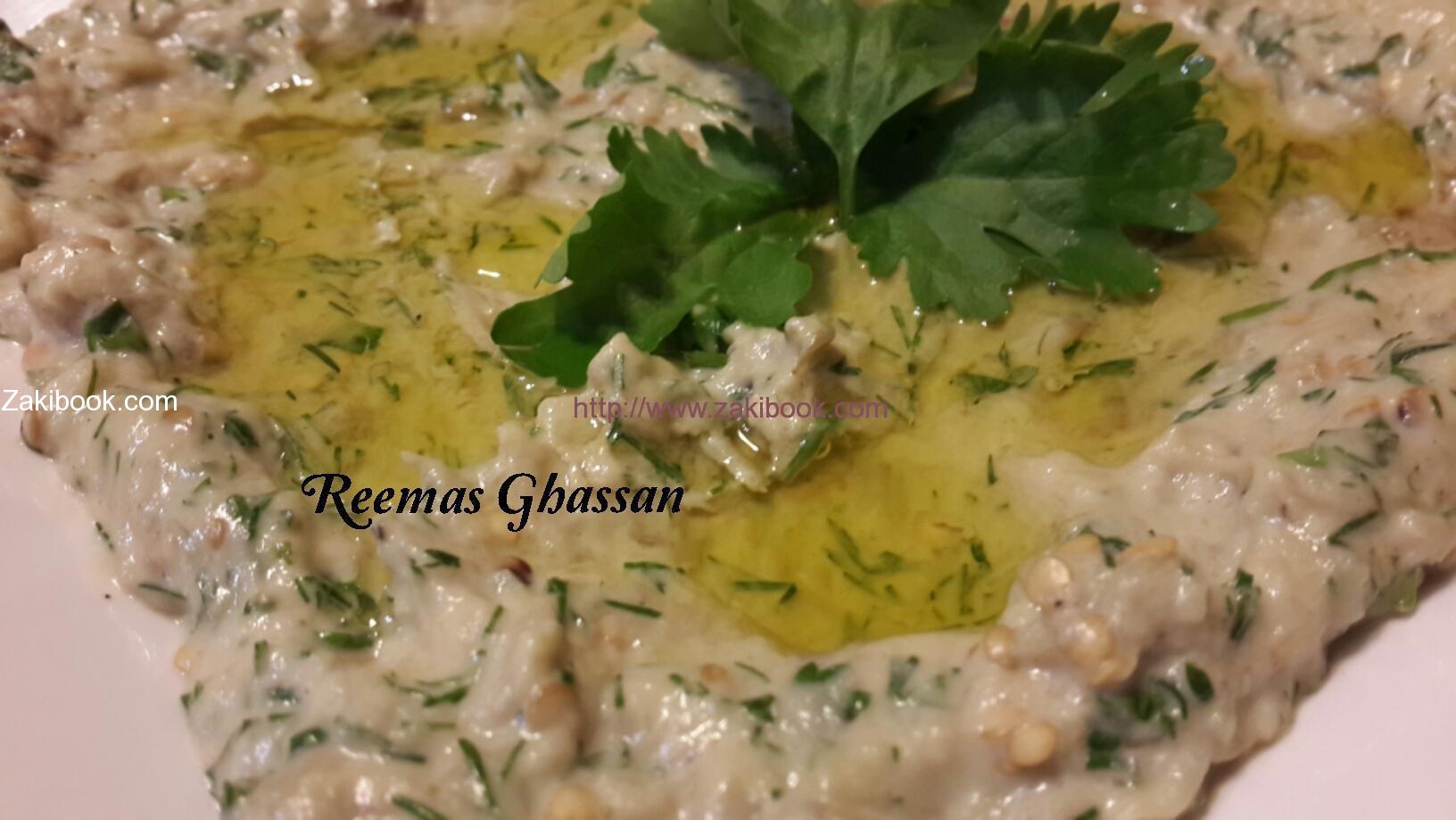 متبل الباذنجان  المشوي أو سلطة الباذنجان انها احدى المقبلات الشاميه والعربيه ذات الشعبيه الكبيره تكاد لا تخلو سفرة طعام من وجودها خصوصا مع المشاوي سهلة التحضير على طريقة Reemas Ghassan.