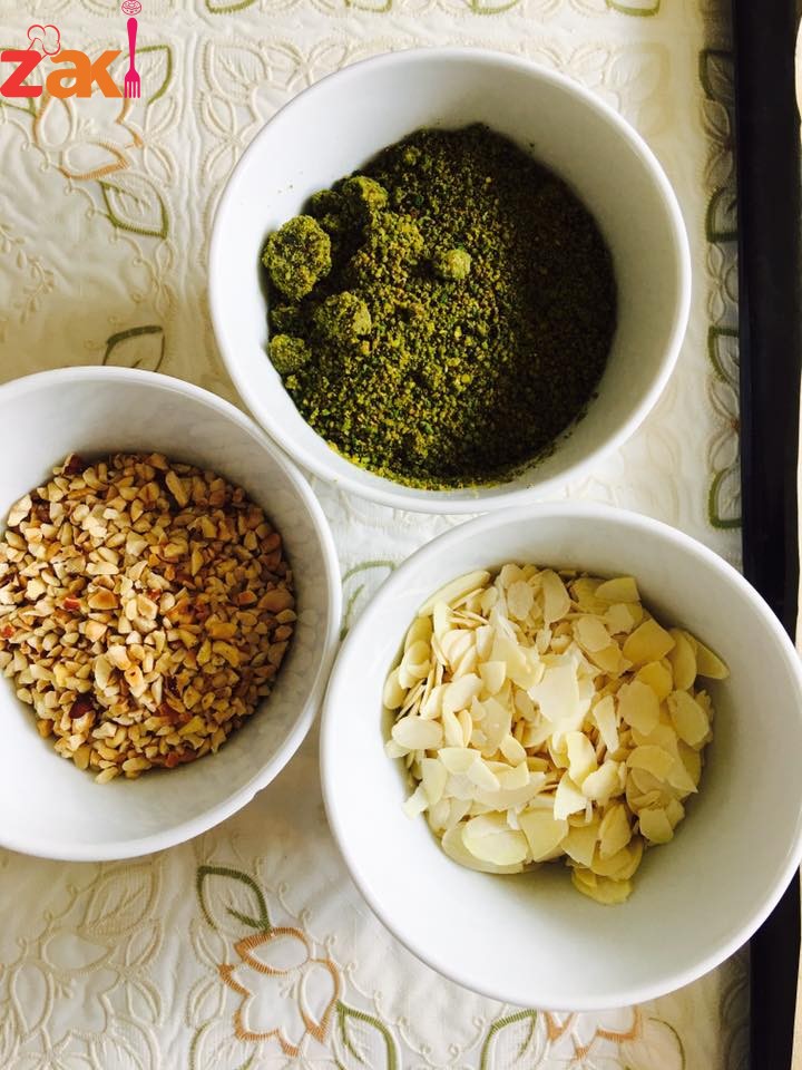 فستق حلبي مطحون . بندق مطحون . لوز مطحون . حسب الرغبة جوز الهند