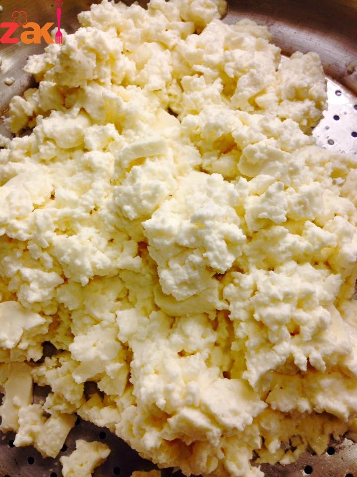 وبعدها صفيت الجبنة من المي وفردتها بايدي