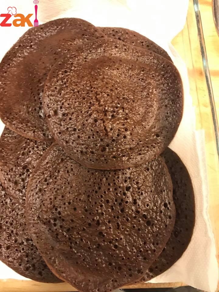 بنخفق كل المواد اللي زكرتها بالمقادير ونخبرها على مقلاية تيفال ونحطها على قماشة نظيفة ونخليهم لحتى يبردو شوي تقريبا نصف ساعة