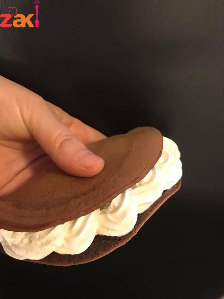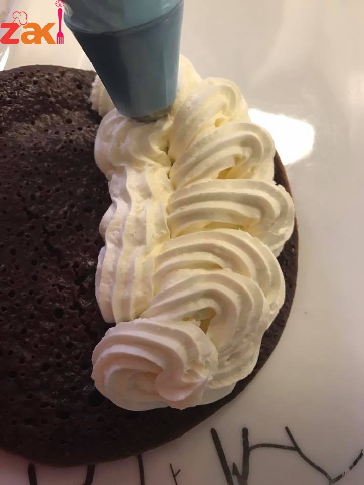 وبنفس الوقت نحضر الكريما ونحشيها متل ماوضحت وصحتين وهنا