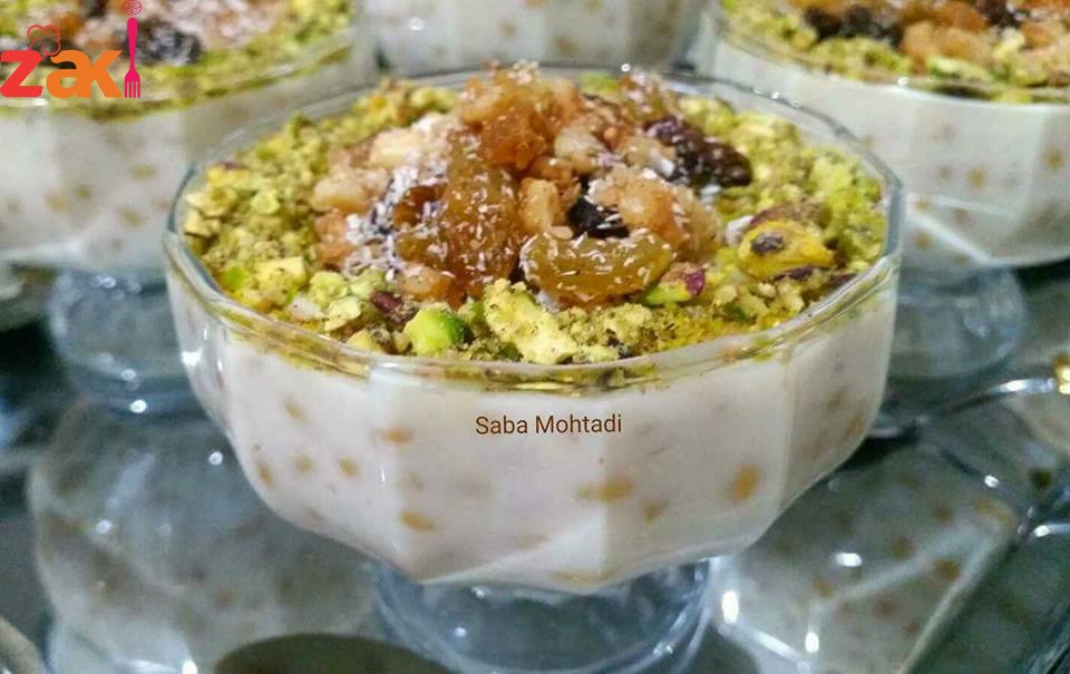 زينتها بالزييب والمكسرات ) جوز وبندق وفستق حلبي ( مع رشة جوز هند ورشة