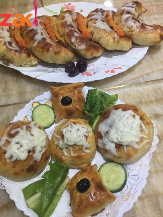 ونبسط العجين ونحط الحسو ونشكله على شكل حلزوني ندهنو بأصفر البيض وشوية حليب ويخبز على حرارة متوسطة في الفرن من فوق وتحت