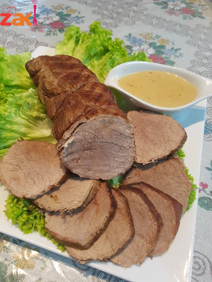 ثم نقطعها دوائر رقيقة و تقدم حسب الرغبة مع خضار سوتيه أو بطاطا بوريه مع الصوص .