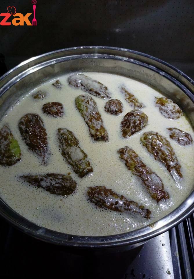 بعد ان يغلي اللبن دون ان يفور فوران بل يغلي كالماء ،نسقط حبات الكوسا فوق اللبن ونضيف له الثوم المدقوق وندعها تغلي لمدة 5 دقائق
