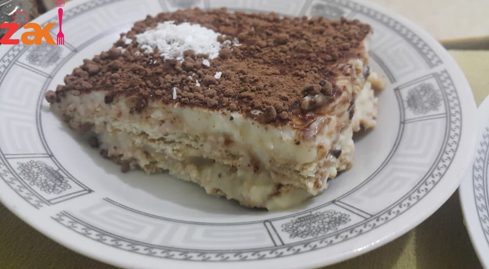 طبقة بسكوت مغمسة بنسكافيه فاتر ثم بنكون محضرين مهلبية وهي حليب ونشا وماء زهر وسكر بعتمد على حسب الكمية الي راح تعملوها انا عملت تقريبا نص لتر حليب وتلات معالق كبار نشا زمعلقتين سكر كبار … وبتحطي طبقة فوق البسكوت وبعمل كمان طبقة بسكوت مغمسة بالنسكافيه وفوقه طبقة مهلبية وبنحطها بالثلاجة لحتى تمسك وبنرش شوكولاته مفتفتة متل الفليك … انا رشيت نسكويك لانه حلو …وصحة وعافية