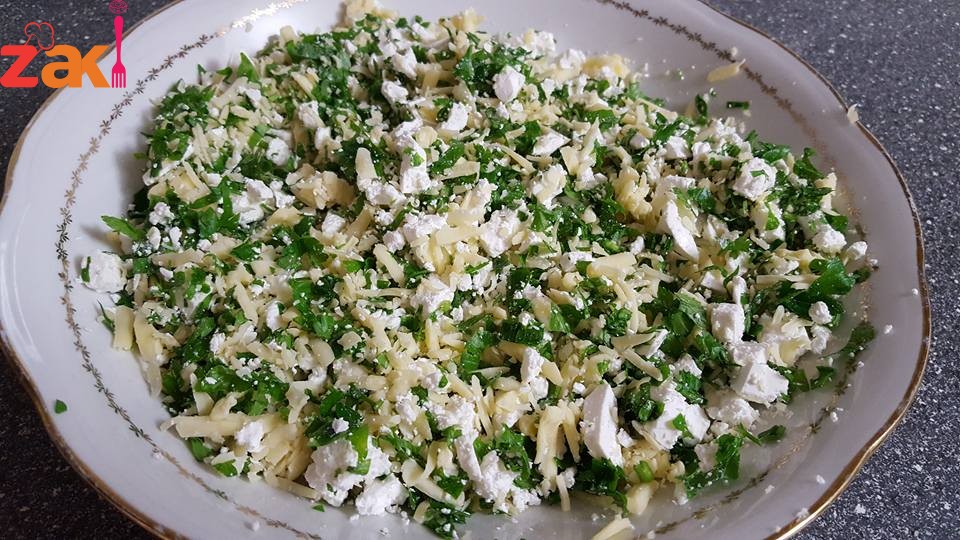 الحشوة ..حسب الرغبة …انا وضعت جبنة بيضاء وجبنة مبروشة وبقدونس ناعم بكميات متساوية