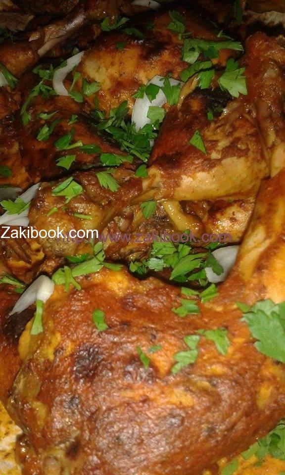 نضع جميع المقادير السابقه بالخلاط ماعدا الدجاج ونخلطهم جيدا ونضعهم فوق الدجاج وننقع الدجاج بالخلطه لمدة ساعتين