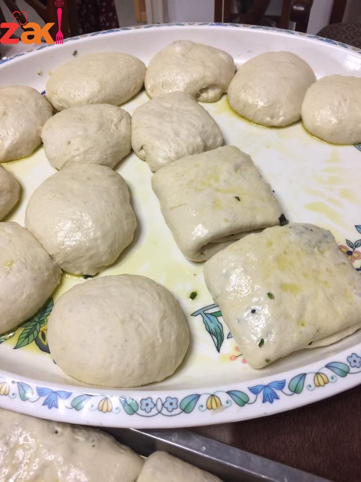 ومتل الصور لما يخمر العجين بنقطع قطع صغيره متل الصوره وبنتركه يرتاح شي ربع ساعه وكملي متل الصور