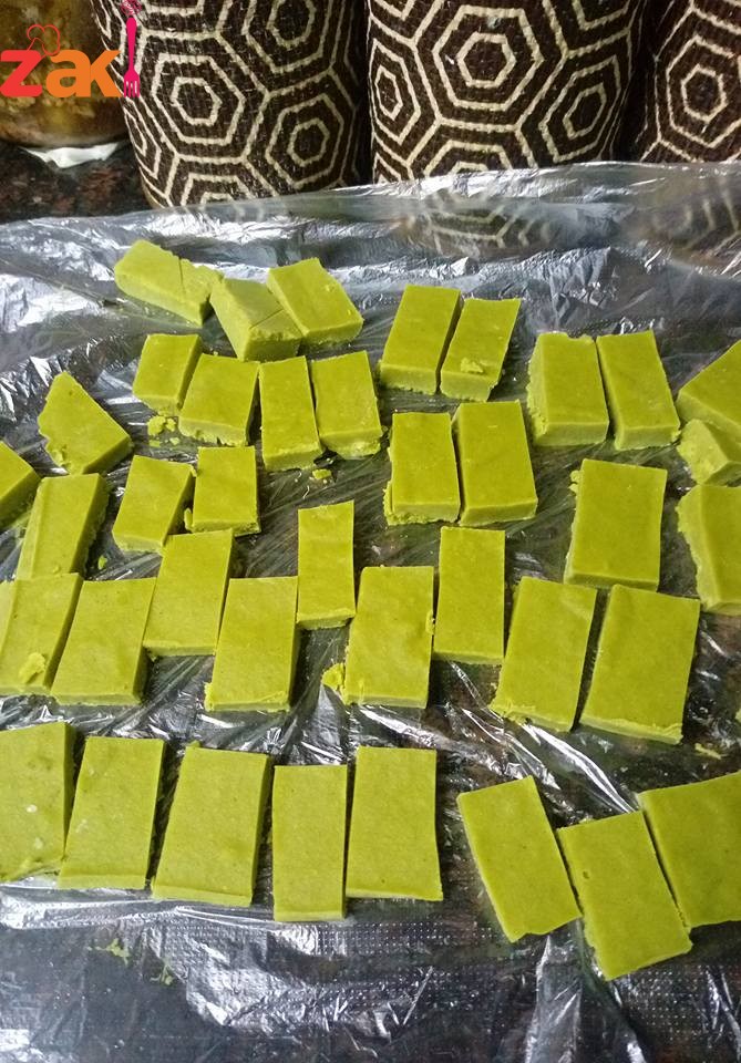 اسكبي الخليط في قالب الثلج وامسحي سطحة بالسكين كي تحددي الخليط كمكعبات ..او حطيهم بصينية وحطي نايلون بالصينية وادهنيها زيت