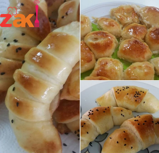 تشكل حسب الرغبة وتدهن بصفار بيضة وحليب وحبة القزحة وبالفرن