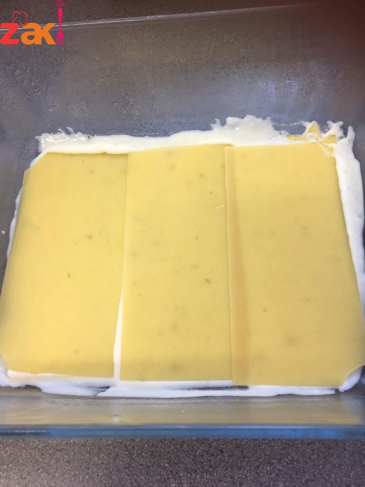 ادهني بايركس بالزيت وحطي طبقة خفيفة صوص ابيض بعدين شرايح اللازانيا بدون سلق وبعدين صلصة حمرا وفوقهم جبنة مبروشة وبعدين لزانيا وفوقهم صوص احمر وجبنة وشرائح لزانيا وآخر شي على الوجه الصلصة البيضا وجبنة مبروشة ودخليهم فرن محمى وسط من تلت لنص ساعة حتى يشقر سطحها