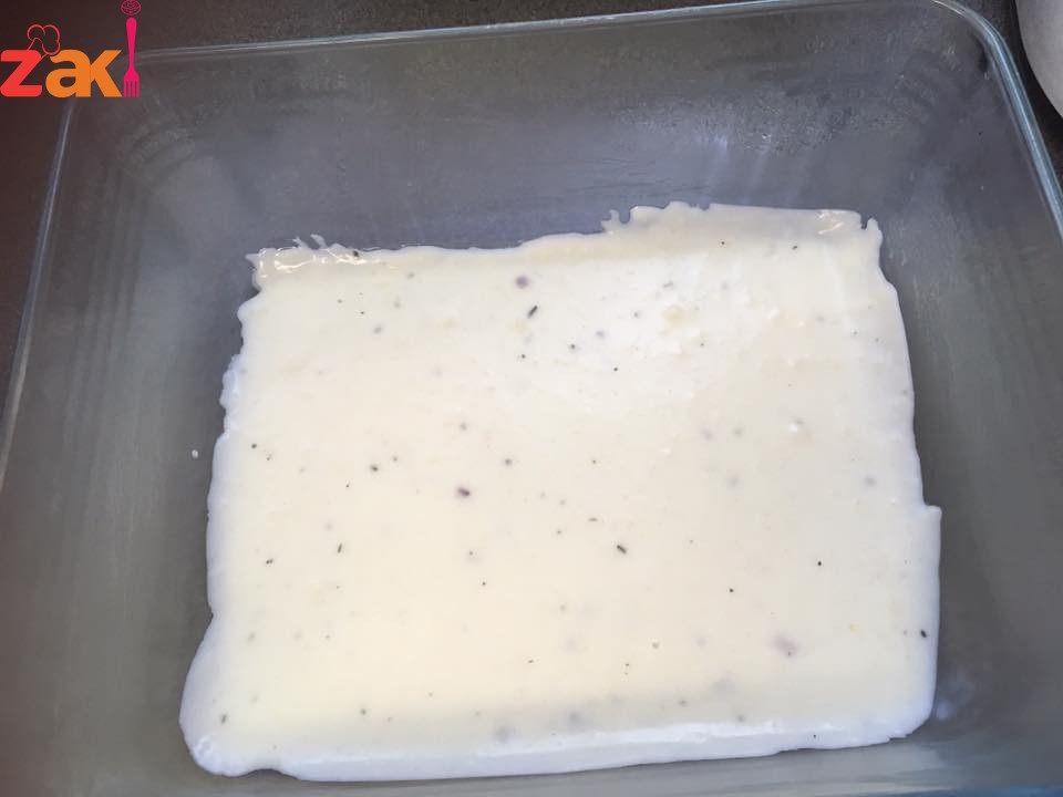 الصوص الابيض لصنية كبيرة لبتسخني خمس اكواب حليب وبطنجرة تانية بتذوبي اربع ملاعق زبدة مع ملعقة زيت نباتي وبتضيفي خمس ملاعق طحين وبتحركيهن لدقايق حتى يتحمصوا شوي وبتضيفي عليهم الحليب الدافئ شوي شوي وبعدين حطي ملح وفلفل اسود ورشة جوز الطيب واوريغانو وحركيهم على نار خفيفة ليتماسكوا واستعمليهم وهني دافيين باللزانيا