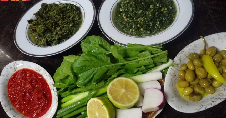 بنشيل كل الاعشاب من الخبيزة وبنفرمها مع العيدان مثل السبانخ وبنغسلها منيح من التراب وبنصفيها