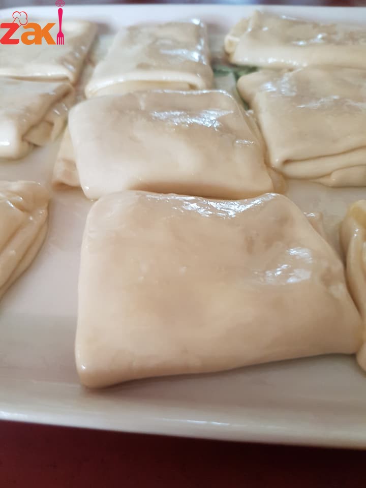 ادهني صنيه في الزيت وقطعي العجين واتركي لمده ربع ساعه
