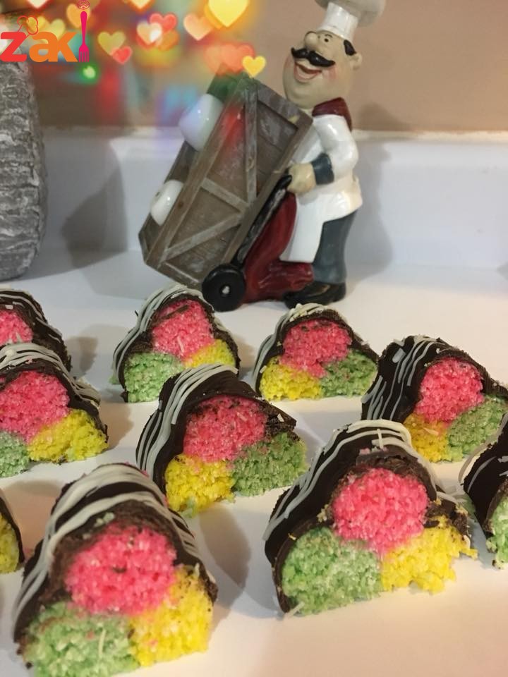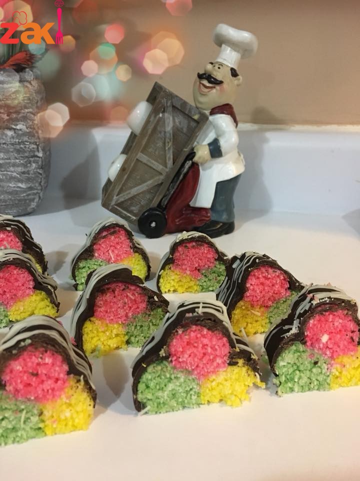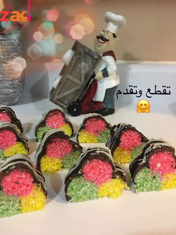 اذا لم يتوفر منكهات ممكن فقط اضافة ملون طعام بتعطيكي شكل مميز … ممكن الاستغناء عن الكريمة البودرة في الوصفة …. جوز الهند يجب ان يطحن وإلا لن تكفي علبة الحليب المحلى وطعم جوز الهند يصبح ناشف