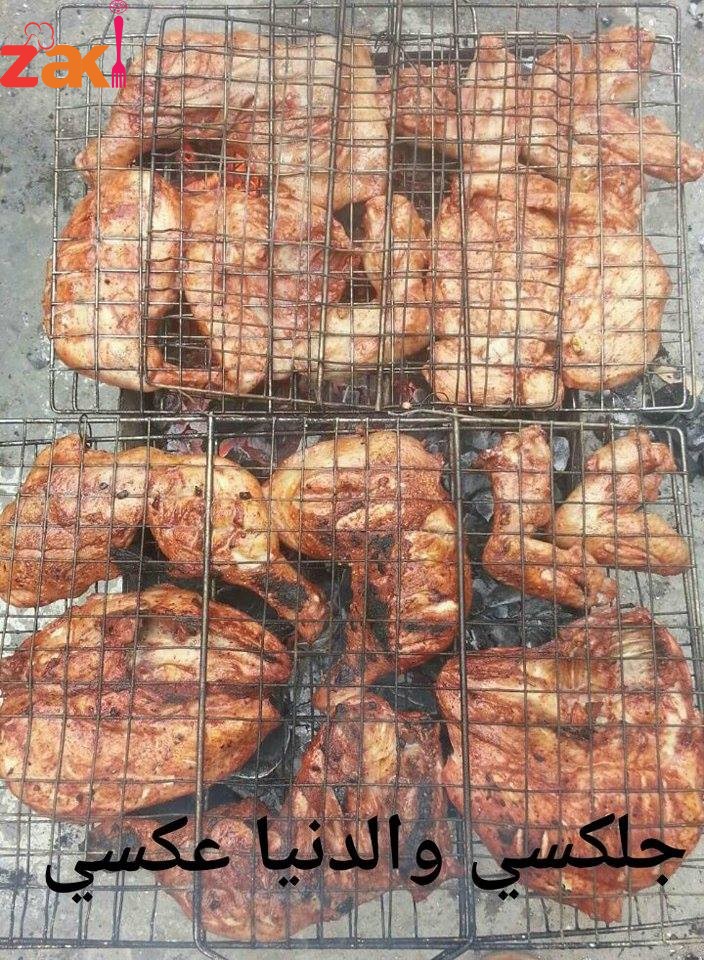 بعد غسل الدجاج جيدا وتقطيعو قومي بتخزيق الدجاج براس السكين بعدا بصحن حطي كوب لبن زبادي وعصير ليمزنه وفصين ثوم مهروسين ولبهارات(ملح، باربيكا حلوه، سماق، كاري أصفر،فلفل أسود، بهارات شواء الخلطه جاهزه، خل ،دبس رمان) وخلطيهن مع بعض وفركي الدجاج فيهن واعمليهن قبل بيوم لطعم ونكهه ولا أروووع من هيك