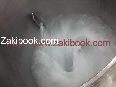 وبنحرك كل المواد منيح وبنتركها ترتاح 5 دقائق.– وبعديها بنصب العجين ملاحظه مو شرط العجنه تاخد لتر الماء كامل بيعتمد على نوعيت الطحين ولازم تكون نوعيتو ابيض فاتح والعجين بس يجهز شكلو زي السحلب جامد مو طري كتير.