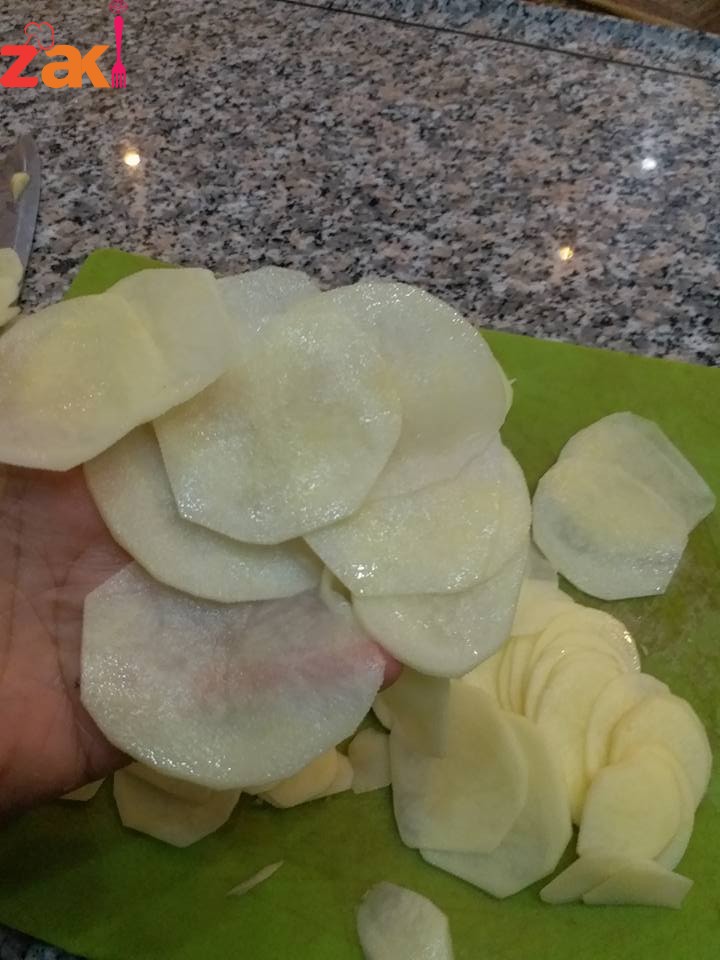 تقطع البطاطا شرايح رفيعة جدا