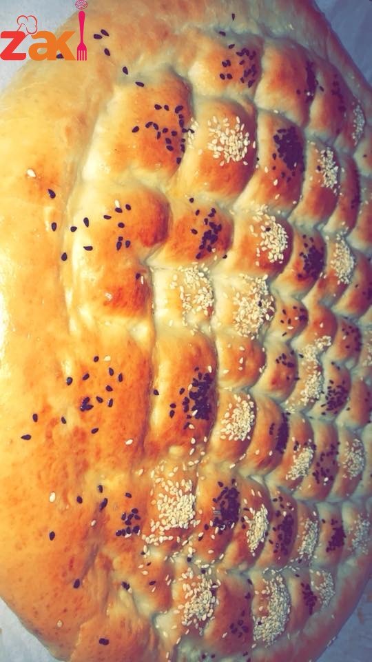 وتدهن بصفار البيض وتزين يالسمسم وحبة البركه او الحبه السوده وتدخل الفرن على درجة حراره ٢٠٠ لمدة ٢٥ دقيقه .
