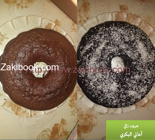 – وأثناء وهي بلفرن بتعملو صوص الشوكولا وهو عبارة عن كاسة مي وكاسة سكر وكاسة زيت و5 مﻻعق كاكاو و5 مﻻعق كاسترد وبطنجرة صغيرة وع الغاز وبس بلش يتماسك مو تخلو ليجمد ﻻ بس يتماسك اولو خلص طفو الغاز وﻻزم تكون خلصت الكيكه حتى تسكبو الصوص وهو سخن عليها وفيكم تزينوها بلفواكه بس انا ماكان عندي حطيت برش جوز هند.