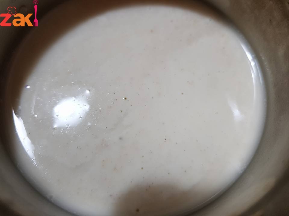ضعي الخميرة مع السكر والمي الفاتر لتختمر