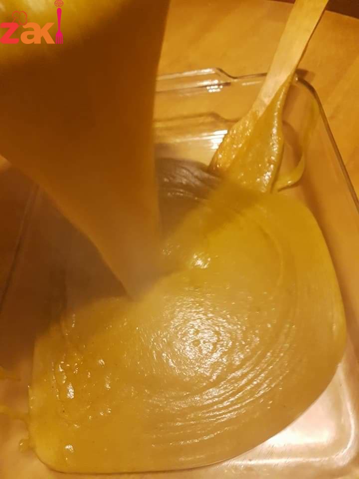 ندهن جاط البايركس بقليل من الزيت ونسكب الخليط ونضعه في الفريزر حتى يجمد