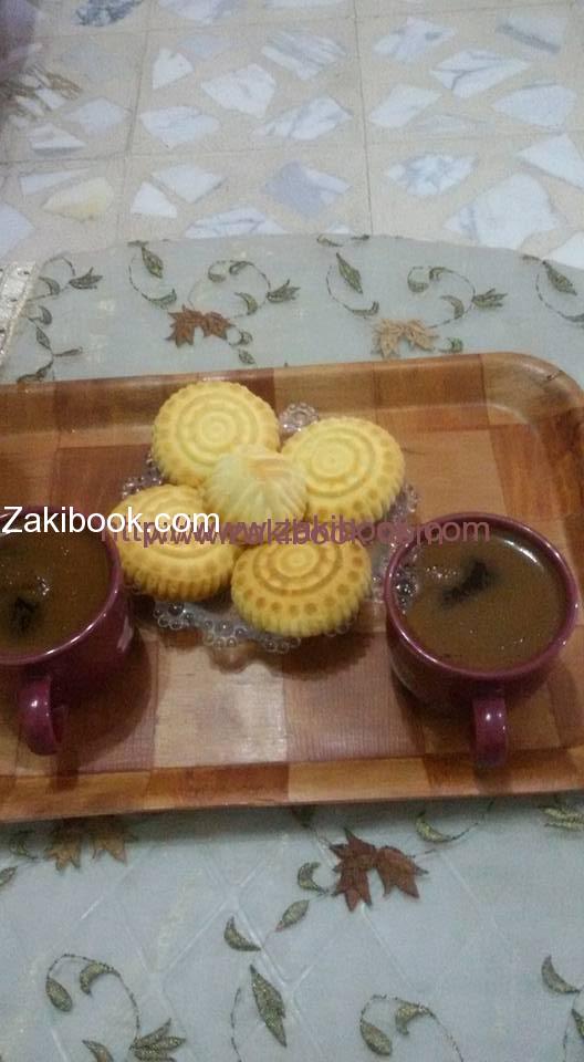 – في وعاء ننخل الدقيق, ونضع عليه السمنة ونبسها بأطراف الأصابع, حتى تتشرب كل ذرات الدقيق من السمنة, ثم نضيف الحليب المكثف المحلى وبهارات الكعك, ونعجن المزيج باستخدام القليل من  الماء.