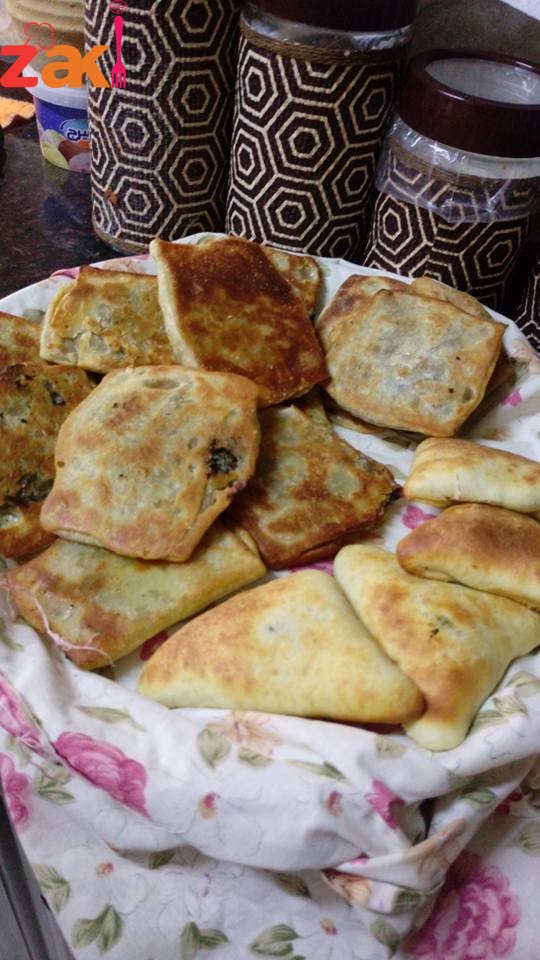 واللي بحب القراص اللي بدون خميرة بنعمله اقراص مثلثات بعجينة خامرة ..يعني انا عملت الشكلين