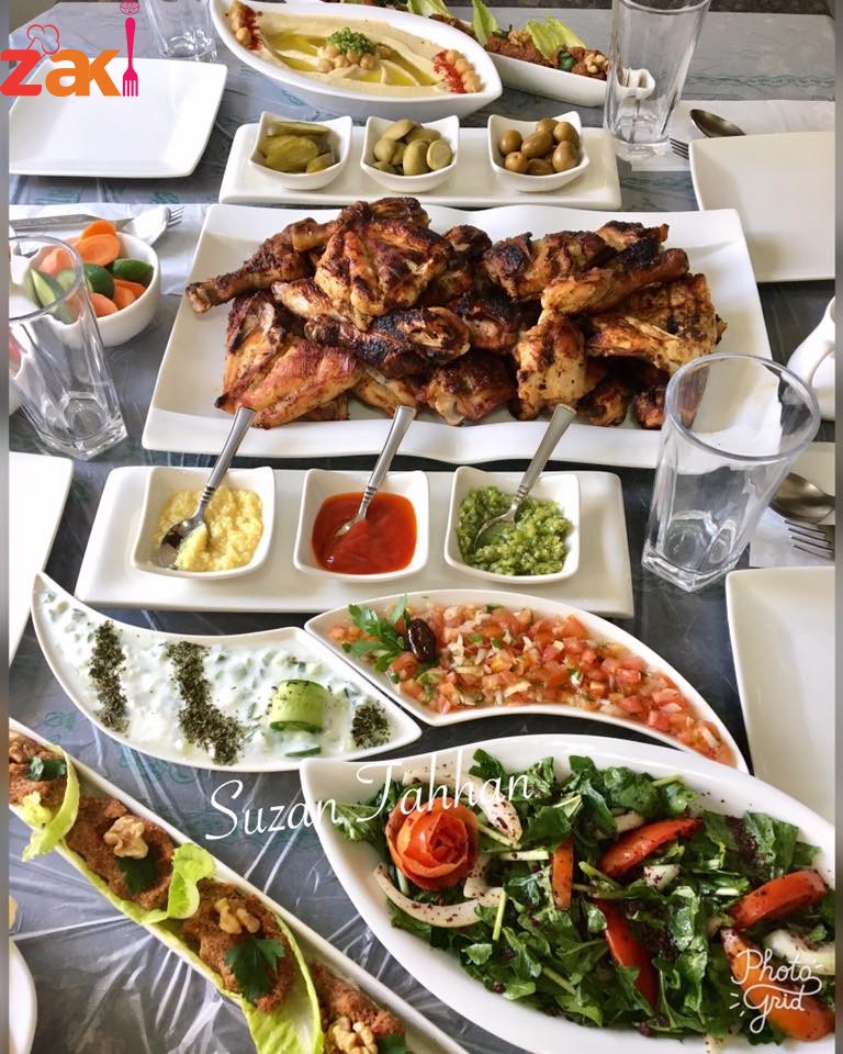 غدانا مبارح دجاج مشوي عالفحم سلطات ومقبلات كله شغلي حمص متبل – سلطة الجرجير- سلطة خيار باللبن-السلطه الفلاحيه- كبة نيه عالطريقه التركيه- تتبيله الفلفل وتتبيلة الزنجبيل- الزيتون – مخلل اللوز الاخضر ومخلل الخيار ما في شي عالسفره جاهز ما في اهنى ولا اطيب من شغل البيت