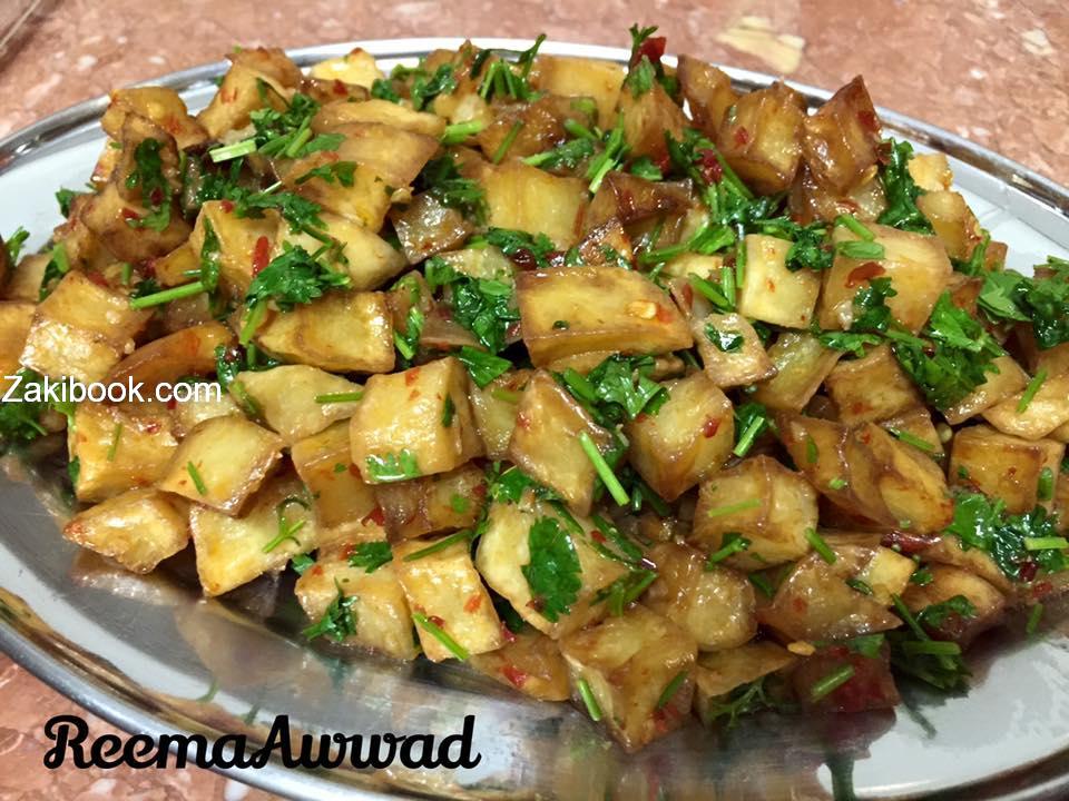 وبقلبهم لحد ما تتشرب البطاطا الحامض.– وبضيف معلقة صغيرة شطة حمرا وبقلبهم مزبوط، وآخر خطوة بضيف الكزبرة الخضرا المفرومة وبطفي النار مباشرة وبقلبها مع البطاطا على الحرارة بس ومباشرة بفضيها في جاط التقديم لحتى ما تسود الكزبرة وتبقى خضرا، وصحتيييين