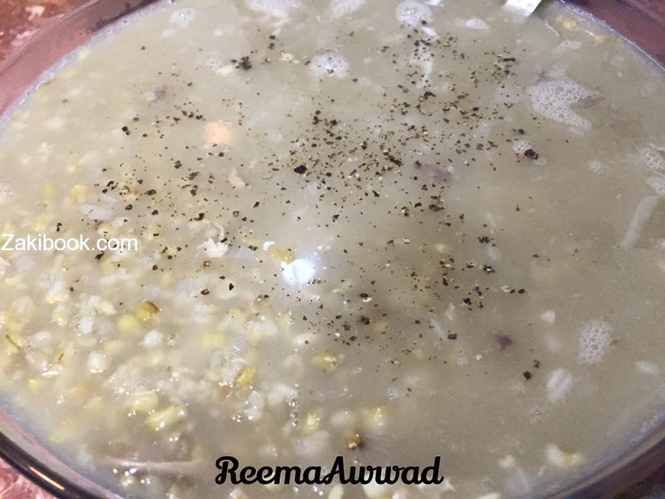 – بعدين بتضيفي مرقة الجاج وملح ورشة صغيرة فلفل أبيض، وبتخليها تغلي لحد ما تستوي وتنفش مزبوط وصحتين.