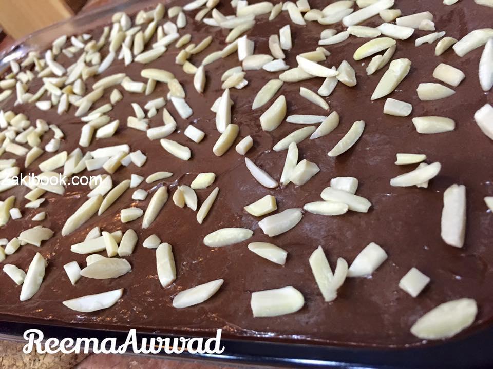 – يزين الوجه بشرائح اللوز وتوضع في الثلاجة ٣ ساعات عالأقل وتقدم باردة, وصحتين.