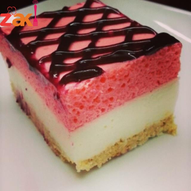 الطبقه الثانيه كاستين كريما سائله و 6 جبنه كيري وعلبة قشطه ومعلقة كبيره جلاتين بودره او باكيت جلو ليمون اخفقي الكريما والجبنه والقشطه وضيفي سكر بودره تقريبا 3 ملاعق كبار ﻷنه الكريما السائله مو حلوه بعدين بتدوبي الجلاتين بنصف كاس مي سخنه بس تدوب كملي الكاسه مي بارده وضيفيهم على خليط الكريما اخفقي منيح وصبي الخليط على البسكوت بس تجمد حضري الطبقه الثالثه بتقدري تحطي نكهة الكريما شو ما بدك انا حطيت كريما فراوله ومعلقة جيلاتين نفس الطبقه الثانيه وصبيهم على الطبقه والزينه كيف ما بتحبي انا حطيت بلوبري الصوص تبعه بس بدون حبيبات وصحه