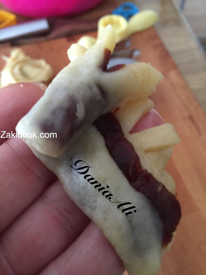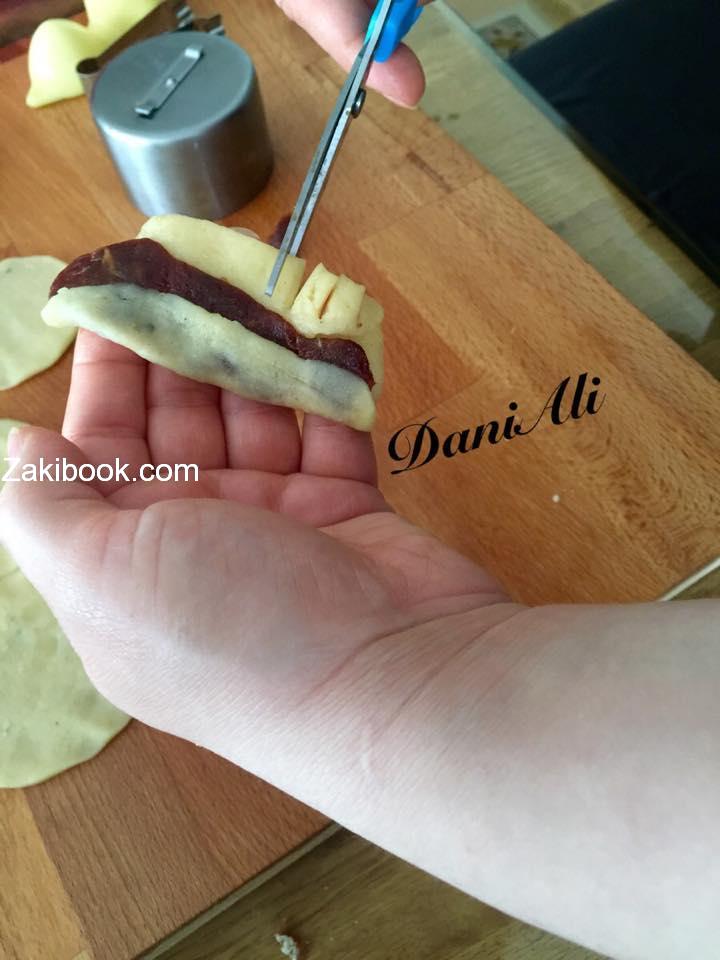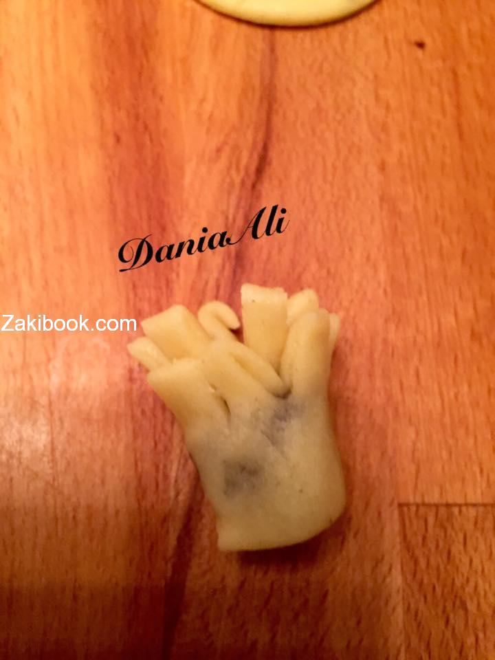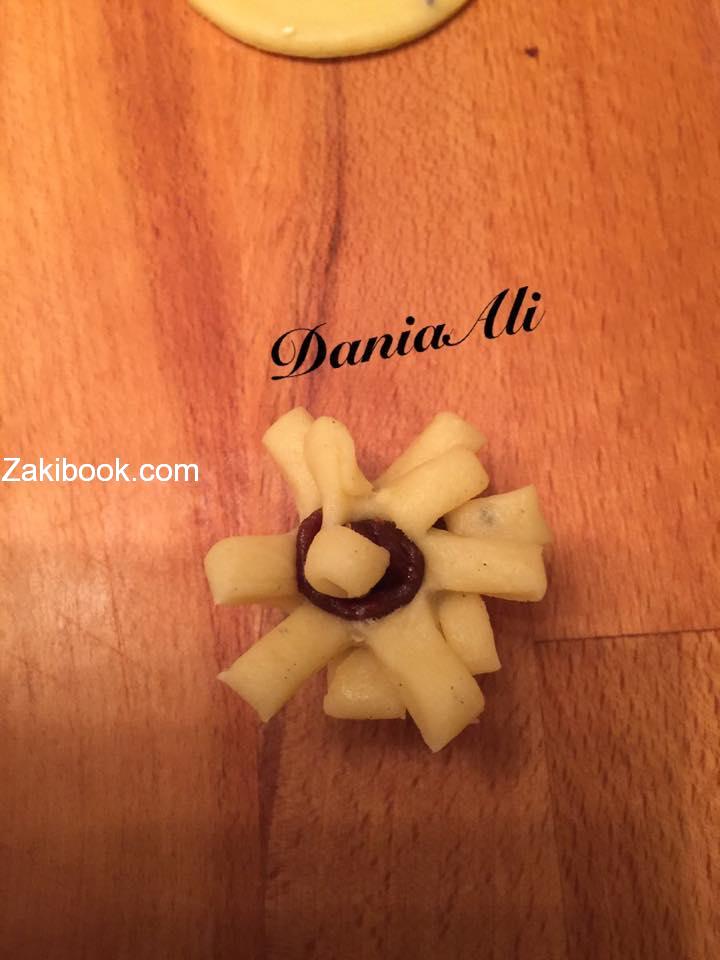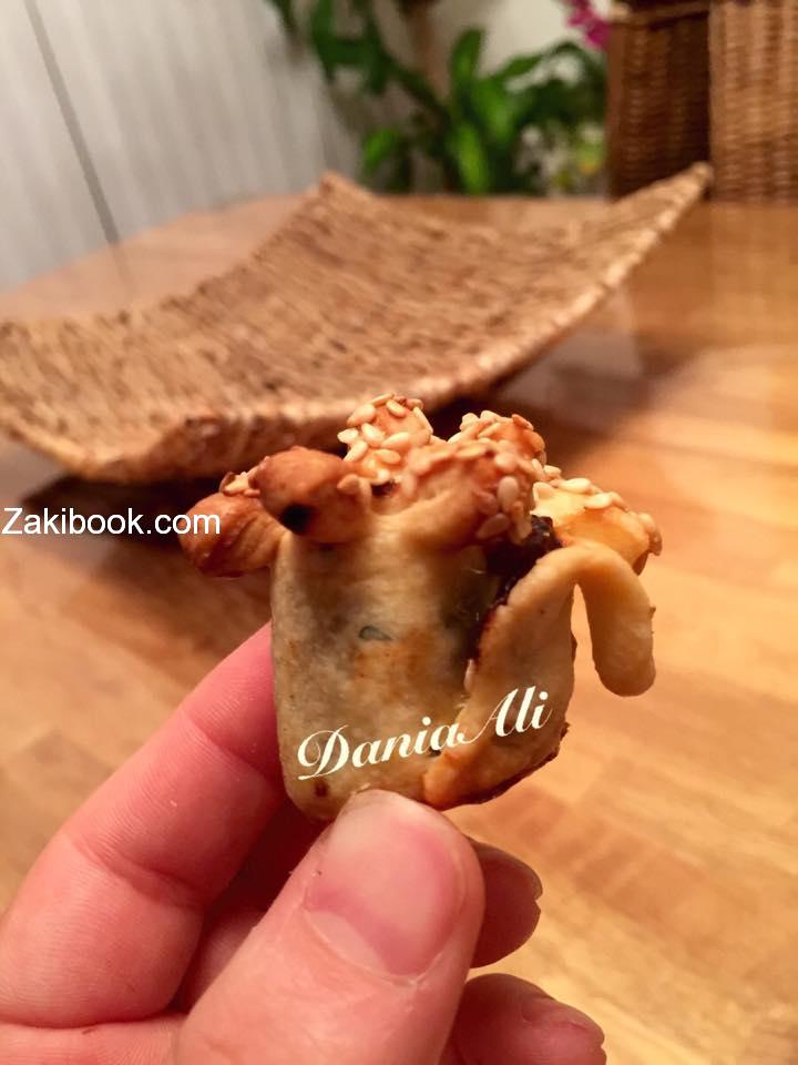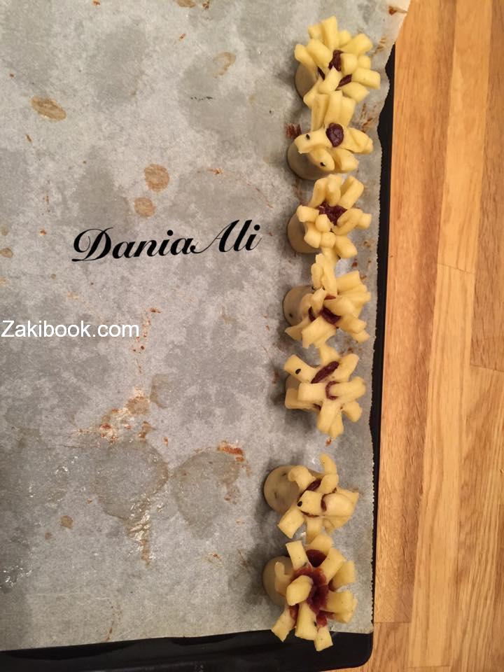 – وتشكل وتحشى حسب الرغبة وندهنها بصفار البيض من القليل من الحليب السائل او صفار بيض مع القليل من النسكافيه